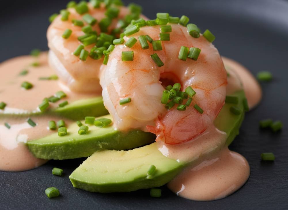 La texture joue sur les contrastes : la souplesse de l’avocat qui fond sous la langue, la fermeté croquante de la crevette et la fluidité nappante de la sauce. En ajoutant quelques herbes fraîches, on apporte une touche finale de légèreté qui équilibre la richesse de l’avocat.