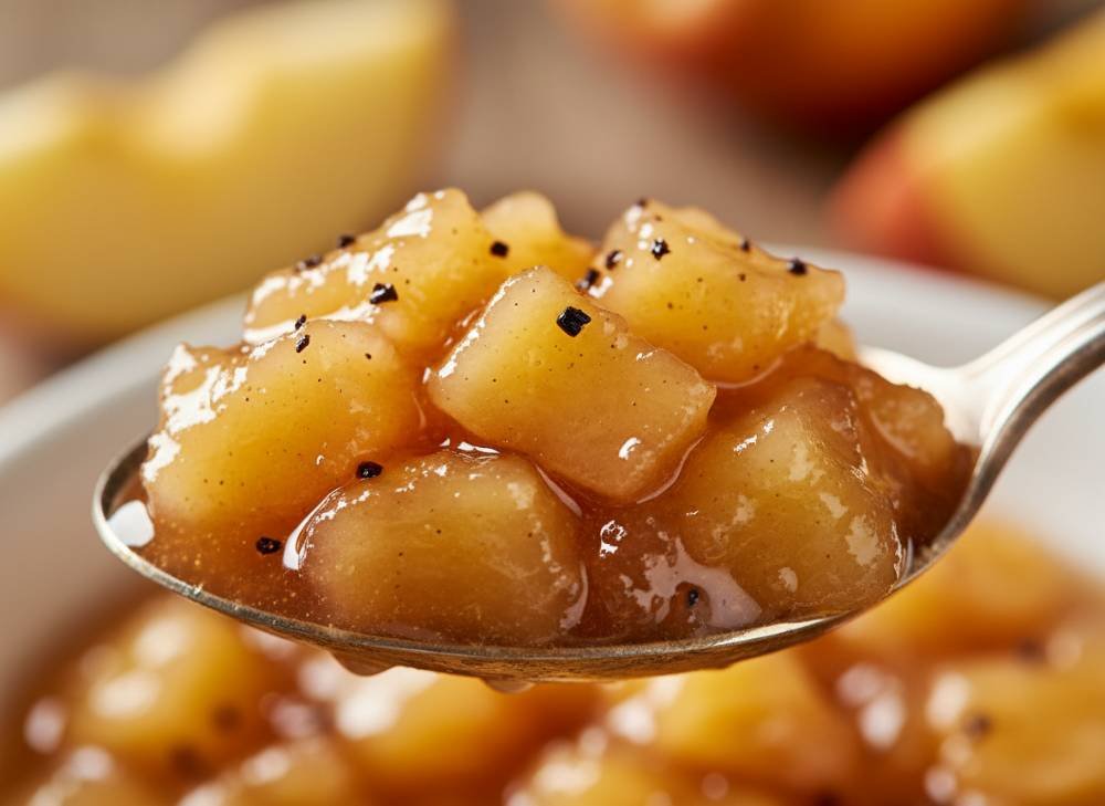Le goût est une explosion de pomme mûre, rehaussée par la rondeur de la vanille. Selon les pommes choisies, vous aurez un équilibre entre le sucre et une légère pointe d’acidité qui réveille les papilles. C’est une saveur “propre”, sans arrière-goût de sirop lourd.