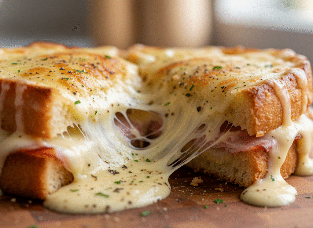 Le goût est un mélange riche de fromage fondu et grillé, de jambon légèrement salé, le tout adouci par la béchamel onctueuse et une note de muscade. La texture est son point fort : un pain croustillant et beurré à l’extérieur, un intérieur moelleux avec le fromage et le jambon fondants.