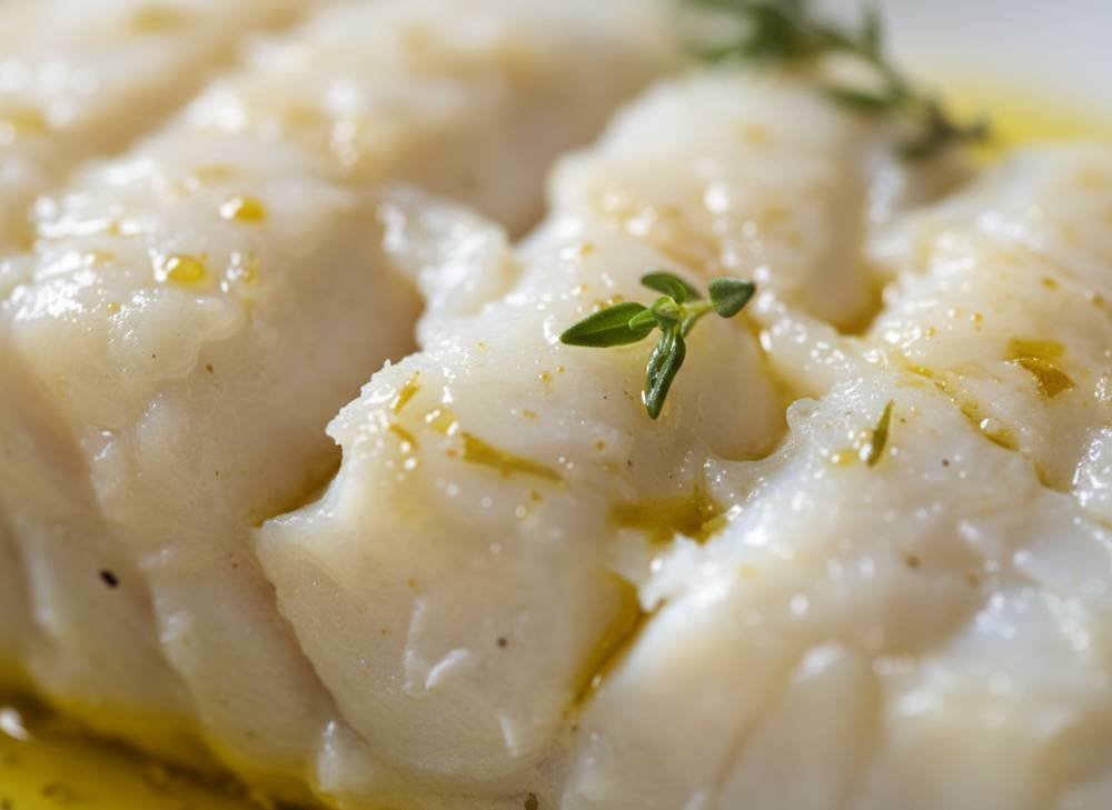 La texture est le point de réussite majeur : le cabillaud doit se détacher en larges pétales nacrés sous la pression de la fourchette. Grâce à la vapeur confinée dans la papillote, la chair reste incroyablement juteuse et fondante, loin des textures fibreuses du poisson trop cuit.