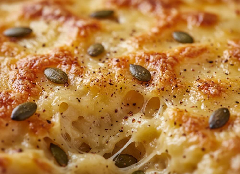 - Le Gratinage : Saupoudrez le reste du fromage râpé. Pour un visuel moderne, ajoutez quelques graines de courge.