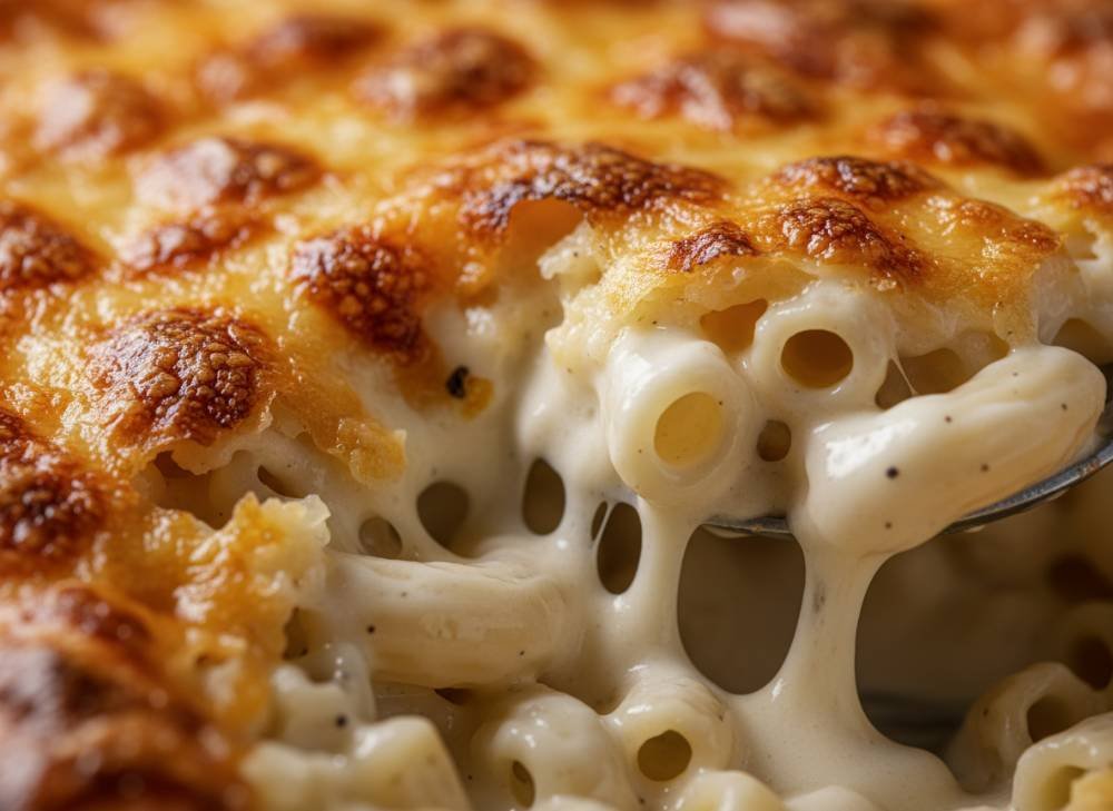 La texture est le point de réussite majeur : le dessus du gratin doit être brun, craquant et croustillant, offrant une résistance délicieuse sous la fourchette. À l’intérieur, en revanche, c’est un festival de onctuosité. Les macaronis, grâce à leur forme tubulaire, emprisonnent la sauce crémeuse pour que chaque bouchée soit parfaitement nappée.