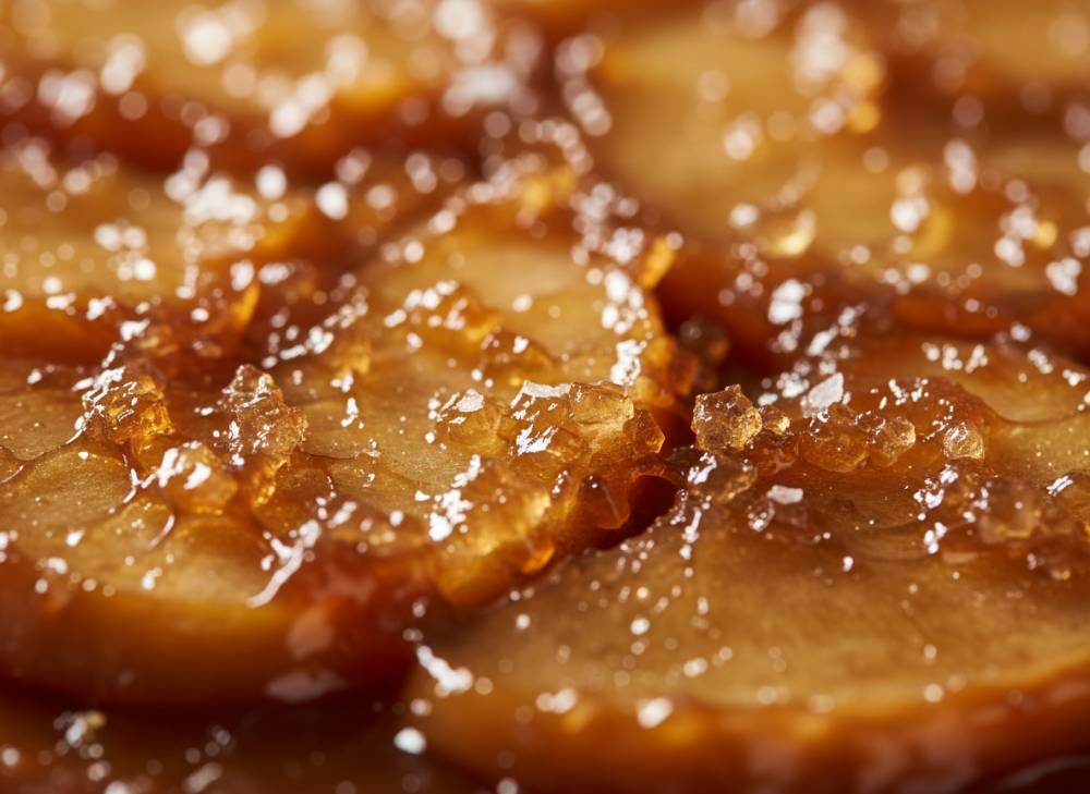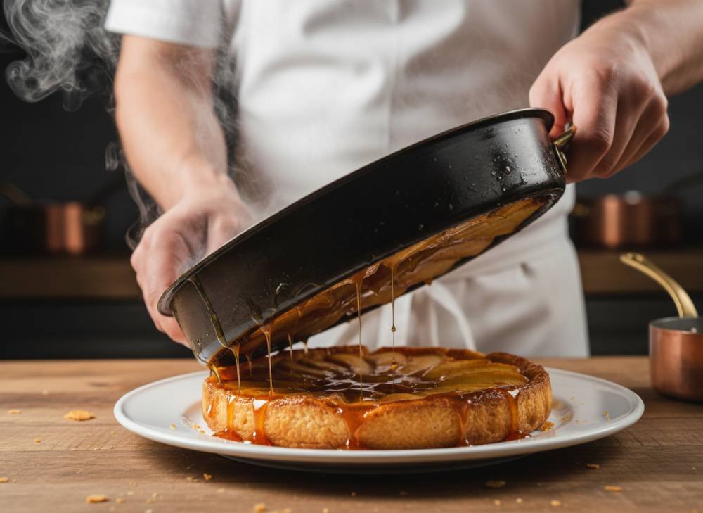 La texture est le point de réussite de la Tatin : les pommes doivent être ultra-fondantes (presque confites), tandis que la pâte (feuilletée ou sablée) qui recouvre le tout pendant la cuisson reste croustillante et protège les fruits. Le contraste entre le dessus moelleux et le dessous craquant au moment du service est magique.
