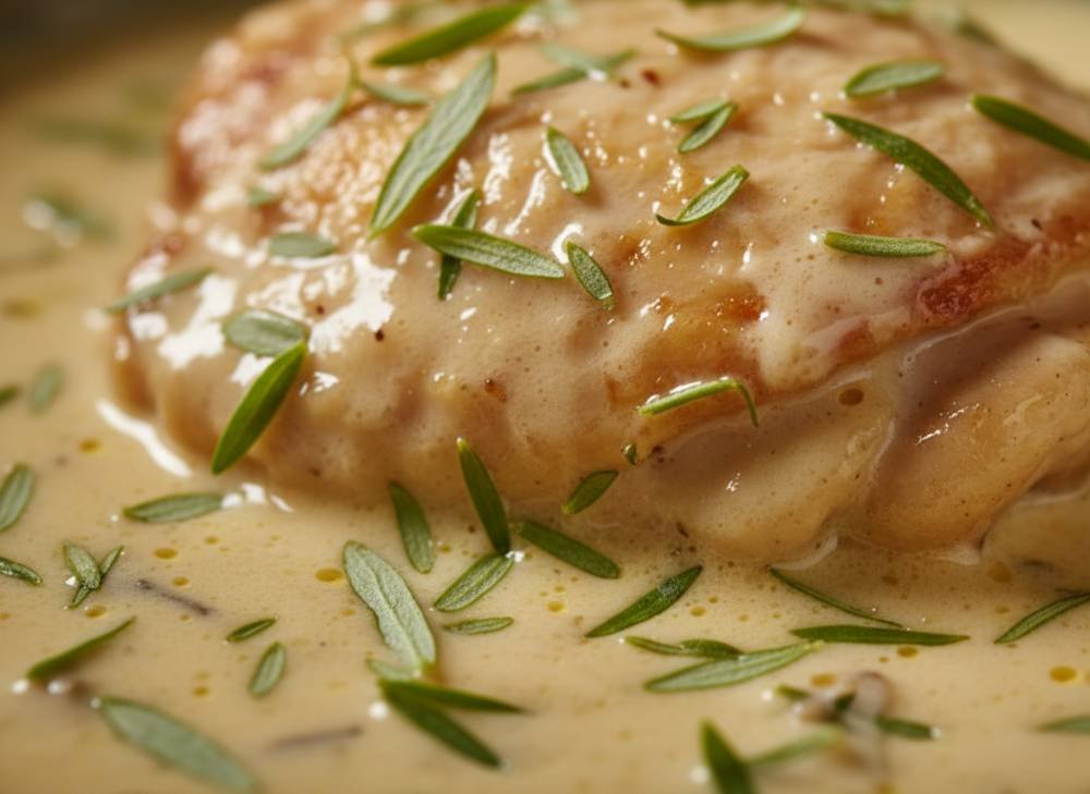 Le goût est dominé par l’estragon, avec ses notes fraîches qui rappellent légèrement l’anis et le fenouil. La sauce, onctueuse et liée, apporte une douceur laitière qui vient envelopper la volaille. L’échalote et l’ail, fondus dans la crème, apportent une base savoureuse qui prolonge le plaisir en bouche.